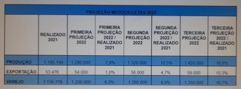 PROJEÇÃO MOTOS 2022