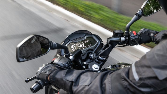 Mais um ponto forte do modelo é a posição de pilotagem, que oferece um bom encaixe para o piloto, independentemente da estatura.
