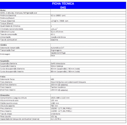 É o mais completo e tecnológico modelo 125 cc dentre as opções de scooters e cub existentes nesta cilindrada.