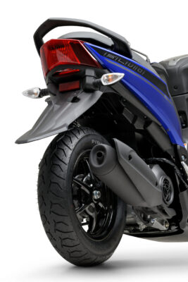 Peso e potência – A pilotagem ágil e divertida fica por conta do câmbio 100% automático associado ao baixo peso seco de 98 kg e motor monocilíndrico de quatro tempos com capacidade de 125 cc, sistema de injeção eletrônica, potência máxima de 9,5 cv a 8.000 rpm, torque de 1,0 kgfm a 5.500 rpm e refrigerado a ar