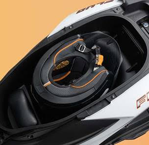No FLUO ABS, o espaço de armazenagem de 25 litros comporta um capacete fechado de tamanho grande e ainda sobra espaço para mais itens do dia a dia.