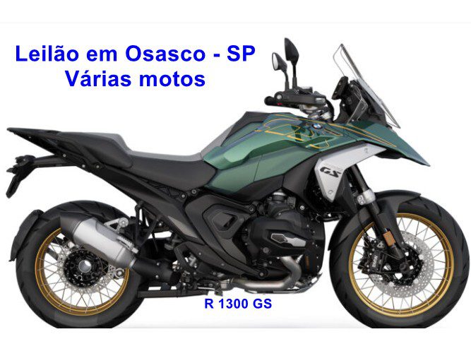 Os apaixonados por modelos de duas rodas terão a oportunidade de disputar diferentes modelos da BMW no leilão. Entre os destaques estão a R 1300 GS Option 719 2025, com valor avaliado na Tabela Fipe de R$114.133,00 e a F 850 GS 2022, com valor estipulado em R$61.597,00.