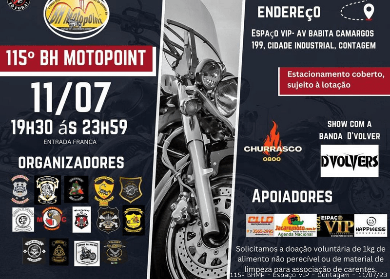 (Desce e veja as fotos no final) 11/07/23 – Contagem/BH – O BHMP, o maior point mensal de união dos motociclistas e motoclubistas de Minas, realizado todas as segundas
