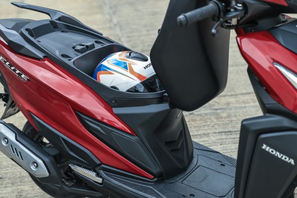Porta-objetos sob o banco: com capacidade para 19,7 litros, capaz de abrigar um capacete tipo Jet
