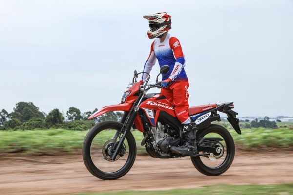 O preto fosco aplicado ao guidão, rodas, chassi, suspensão dianteira, balança traseira e sistema de escapamento acrescenta o necessário caráter de moto pronta para um uso radical, tendo como complementos o logotipo Red Rider e dos lubrificantes Pro Honda. A inscrição “300” aplicada na porção superior da carenagem de farol e nas laterais, emulando number plates, é outro elemento de distinção do modelo