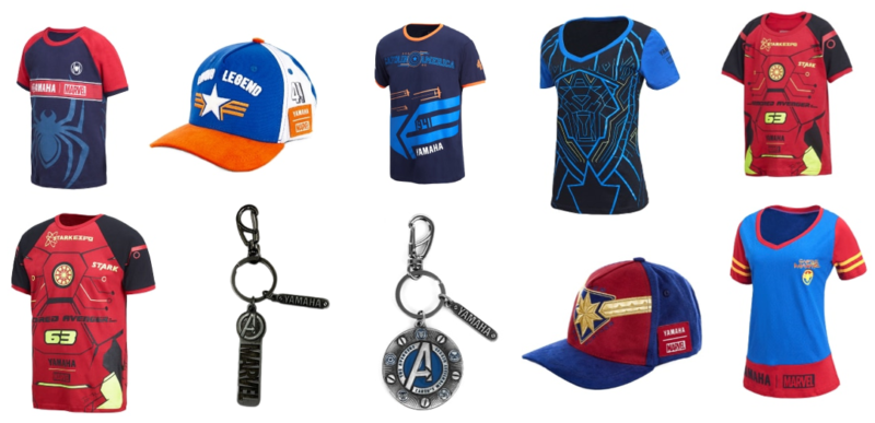 São camisetas, bonés e chaveiros para vestir os fãs da Yamaha e da Marvel e brindar essa aliança.